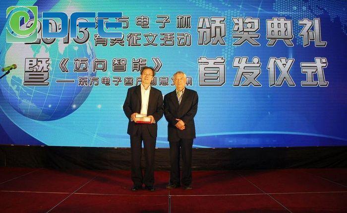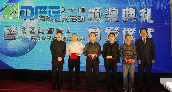 杨总及合作主办方领导为“上海国升电子仪器有限公司杯”有奖征文一等奖得主颁奖