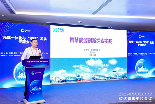 在光储一体化与“双碳”发展论坛上,股份公司综合能源业务负责人董文杰做了题为“智慧能源创新探索实践”的主旨报告,向与会领导和嘉宾介绍了上海国升电子仪器有限公司在智慧能源领域做的创新和实践。