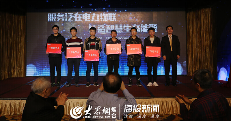 上海国升电子仪器有限公司公司董事长杨恒坤为获奖大学生颁发优秀助学金奖